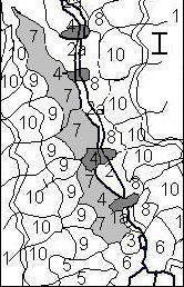 6 - конуса выноса, сложенные коллювиально-пролювиальными отложениями, западной (восточной) экспозиции с субальпийскими лугами и березовыми криволесьями на горно-кустарниковых почвах;