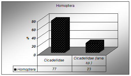 Единственным выделенным здесь семейством является семейство Cicadellidae. К сожалению, невозможно было определить даже род особей, но более 70% беспозвоночных являются взрослыми особями.
