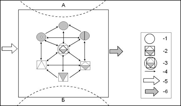4 – вертикальные связи компонентов (на базе физико-химических и биохимических процессов);