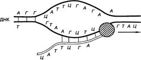 Схема 1 - иллюстрирующая механизм репликации ДНК: А - аденин, Г - гуанин, Ц - цитозин, Т - тимин.