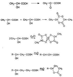 По химическим свойствам оксикислоты являют сумму свойств спиртов и карбоновых кислот, сочетая эти свойства в одной молекуле, и в то же время они проявляют ряд новых свойств, обязанных взаимному влиянию функциональных групп друг на друга или взаимодействию этих групп между собой. К таким появляющимся новым свойствам можно отнести: образование циклических диэфиров, лактидов из боксикислот и легкость их окисления до кетокислот; легкость реакций в-элиминирования в случае в-оксикислот; образование внутримолекулярных сложных эфиров из г-оксикислот. б-Оксикислоты образуют комплексные соединения хелатного типа.