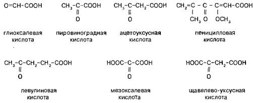 В структурном плане оксокислоты несколько более примитивны, чем оксикислоты — сказывается потеря асимметрического центра при переходе от гидроксикислот к оксокислотам. Так, при окислении любой формы молочной кислоты мы получим одну единственную пировиноградную кислоту. Но в тоже время, этот класс бифункциональных соединений отличается большим разнообразием химических реакций, химических особенностей, обязанных взаимному влиянию карбонильной и карбоксильной групп.