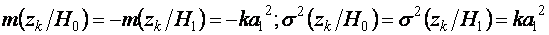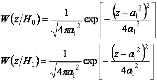 Как было показано в разделе 2, логарифм отношения правдоподобия полностью известного сигнала имеет при гипотезе и альтернативе нормальное распределение: