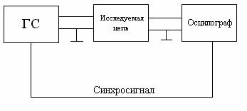 Генератор входного сигнала ГС с высокой точностью формирует заданное напряжение, подаваемое на вход цепи, схема которой приведена на рисунке 1. Выходное напряжение подаётся на Y - вход осциллографа, работающего в режиме ждущей развёртки с внешней синхронизацией от ГС.