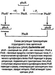 Продуктами генов – «энхансеров» являются белки с молекулярной массой 25–30 кДа, способные связываться с промоторной областью. Как правило, такая система двухкомпонентна и включает «сигнальный» белок, способный «чувствовать» изменение условий окружающей среды и стимулировать синтез другого белка – «активатора», который и запускает транскрипцию искомого белкового посредника.