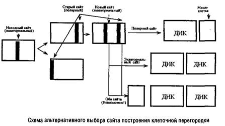 В любой из клеток т/л-мутанта одновременно существуют два функционально активных сайта построения перегородки, но в клеточном цикле срабатывает лишь один из них.