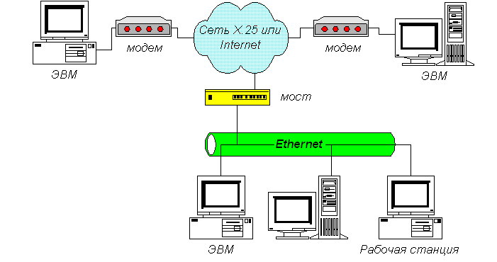 Рисунок 6 - Принцип объединения компьютеров в глобальных сетях.