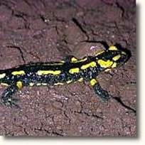 Представителем семейства саламандр может служить огненная саламандра (Salamandra maculosa), которая может быть названа пятнистой, так как испещрена множеством желтоватых и золотистых пятнышек, разбросанных по черному фону. Живет она во всей Средней и Южной Европе, Северной Африке и Передней Азии; обитает в сырах темных местах и днем прячется под корнями, под камнями и в норках. Самое важное для нее условие жизни - влага, так что в сухую погоду саламандра чувствует себя плохо и может даже совсем погибнуть. Детеныши рождаются живыми. Головастики, снабженные жабрами, живут в воде, но осенью теряют жабры и поселяются на земле. На зиму впадают в спячку. Едкая слизь, выделяемая кожными железами, служит для саламандры единственным орудием защиты, и она пользуется им очень умело, брызгая ядовитыми каплями на расстоянии нескольких футов. Ядовитые свойства этой слизи, как мы видели, всегда очень преувеличивалась, но несомненно, что сок этот смертелен для многих мелких животных. Отравленная птица не может стоять на ногах, ноги и пальцы судорожно сжимаются, она падает на бок и быстро вертится. Смерть наступает через минуту после отравления. Однако для крупных животных и для человека яд этот не опасен и вызывает только легкое воспаление на коже. При хоршом уходе саламандра может очень долго жить в неволе. У одного натуралиста она таким образом прожила 18 лет и приучилась выходить из своей норки за пищей.