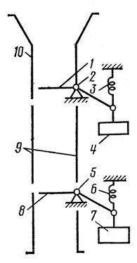 По истечении определенного времени, необходимого для измерения и работы печатающего механизма, с электромагнита 6 снимается напряжение питания, заслонка 8 под действием пружины 7 и силы тяжести зерна поворачивается вокруг своей оси 5 и преобразователь освобождается от зерна. Через не которое время по команде прибора на электромагниты 3 и 6 поступает напряжение питания и они поднимают заслонки 1 и 8. После этого преобразователь готов к приему новой порции зерна.