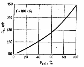 Рис2 Зависимость емкости датчика Cs от относительной влажности Fret.