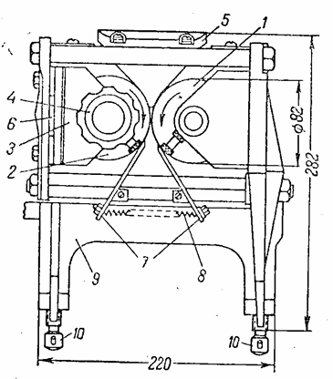 Датчик с валками отличается громоздкостью и большим весом и неприменим для мелко измельченных материалов, таких, как мука. В то же время при применении этого датчика результаты измерения не зависят от величины навески; можно использовать большие навески (100— 150 г и больше), значительно лучше отражающие среднюю влажность материала, чем малые навески, используемые в датчике с ручным прессом. Здесь, так же как и в других датчиках с прессованием материала, на результаты измерения влияет износ электродов, происходящий вследствие больших усилий при прессовании. В датчике с валками вследствие износа изменяются острота нарезки валиков.