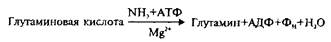 Дезаминирование глутамина катализируется глутаминазой, ферментом, наиболее активным в нейронах, где он локализован в митохондриях. Следует отметить, что активность этого фермента в головном мозге невелика; продукты реакции - глутаминовая кислота и аммоний - тормозят активность фермента.