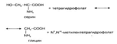 Важно отметить образование в этих реакциях метилентетра-гидрофолата, который может быть использован в мозге как источник одноуглеродных фрагментов. То же следует подчеркнуть применительно к описанной серингидроксиметилтрансферазной реакции.