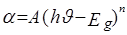 где e - заряд электрона, h - постоянная Планка, с - скорость света. В арсениде индия n-типа величина Еg=0.35 эВ при Т=300 К, а показатель степени в выражении для a=0.85 n=1, в материале р-типа Еg=0.36 эВ, а n=0.5.