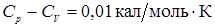 У жидкостей, как и газов, следует различать теплоемкость при постоянном объеме и при постоянном давлении. Разность молярных теплоемкостей равна Cp – CV равна работе расширения pdV ( p – молекулярное давление ) моля жидкости при его нагревании на один градус, поэтому численное значение этой разности зависит от значения коэффициента объемного теплового расширения жидкости. В отличие от идеальных газов значение Cp - CV у жидкостей не равно постоянной R, а может быть и больше и меньше в зависимости от значения коэффициента объемного расширения и от величины внутренних сил взаимодействия частиц жидкости, против которых совершается работа расширения (давление p в выражении pdV связано именно с этими силами).