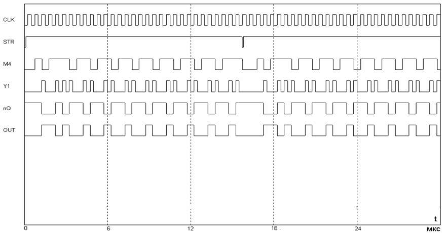 Рисунок 11 – Временные диаграммы в характерных узлах изделия – результат работы пакета MicroCap