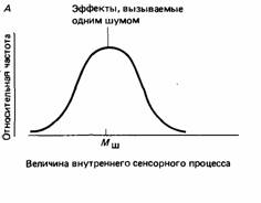 А. Относительная частота ощущений разной силы при наличии только шума.