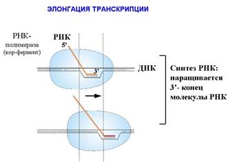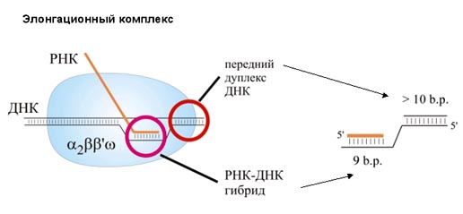Элонгационный комплекс довольно стабилен, т.к. он должен выполнить большую работу. То есть, сам по себе он с ДНК не «свалится». Он способен перемещаться по ДНК со скоростью до 50 нуклеотидов в секунду. Этот процесс называется перемещение (или, транслокация). Взаимодействие ДНК с РНК-полимеразой (кор-ферментом) не зависит от последовательности этой ДНК, в отличие от σ-субъединицы. И кор-фермент при прохождении определенных сигналов терминации завершает синтез ДНК.