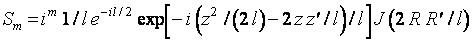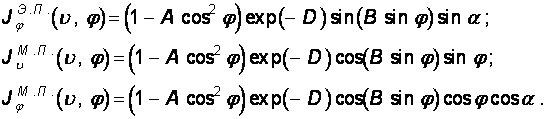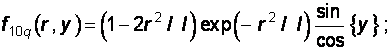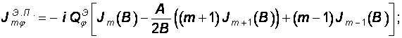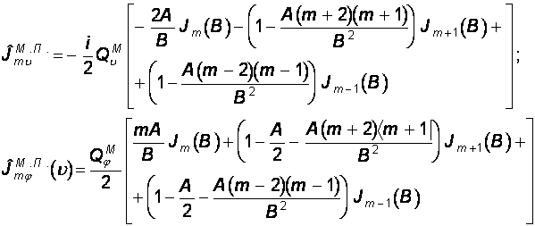 Для следующего типа колебаний «10 q» выражения для первичных токов имеют тот же вид, но A1=3A, D1=3D, B1=B. Далее поля разлагаются в ряд Фурье. Поскольку тело невелико, можно ограничиться небольшим числом гармоник. Используя формулы для коэффициентов ряда Фурье и интегральное представление функции Бесселя (9.21), получаем выражения для гармоник падающих токов. При этом в силу симметрии в случае синфазных токов на зеркалах присутствуют только нечетные гармоники, что соответствует максимуму поля резонатора в области диска: