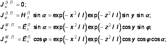 После вычисления первичных токов используется алгоритм решения задачи возбуждения тела вращения, основанный на уравнении (3.85). Результат получается в виде распределения азимутальных гармоник плотностей эквивалентных токов на поверхности диэлектрика.