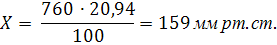 100% смеси газов имеют давление 760 мм рт. ст. 20,94% О2 X