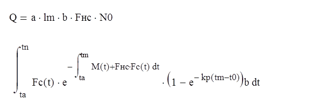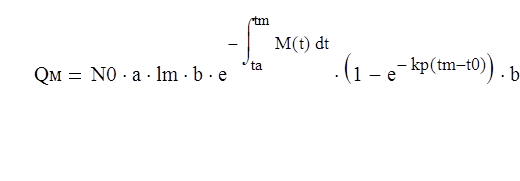 Масса улова Qм равна биомассе поколения в возрасте tм, соответствующем кульминации ихтиомассы с учетом естественной смертности рыб: