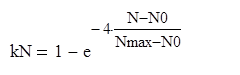 Функцию кN определим с учетом того, что при некотором минимальном запасе N0 вылов рыбы нежелателен при любом tп и, следовательно, до величины запаса N0 коэффициент кt =0. При большем, чем N0, запасе [Iв] растет и при некотором большом запасе Nмакс может принимать значение, близкое к 1.