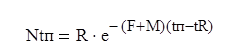 tR - возраст вступления рыбы в промысловое стадо; F и M - соответственно коэффициенты промысловой и естественной смертности в возрасте от tR до tп ; Ntп- численность популяции в возрасте tп.