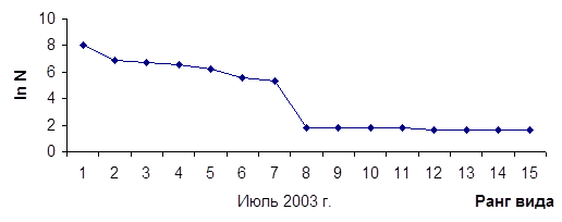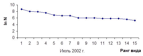 Рисунок - Ранговое распределение численности видов зоопланктона р. Припять