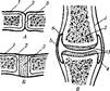 А — непрерывное соединение:1 — надкостница; 2 — кость; 3 — фиброзная ткань (волокнистое соединение).
