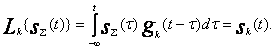 Определим вид оператора разделения Lk для системы с ЧРК. При использовании линейных фильтров с импульсными реакциями gk(t) и группового сигнала sΣ(t) вид оператора Lk следующий: