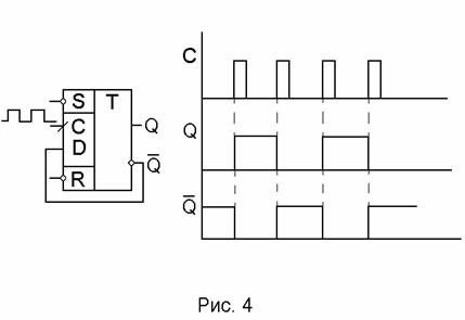 Счетный триггер и эпюры сигналов, поясняющие его работу, представлены на рис.4.