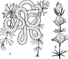 2 — стебель подводного растения с яйцами лютки.