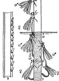 1 — последовательные стадии откладывании яиц;