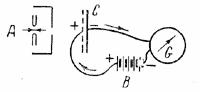 прообразом современных фотоэлементов. Прибор состоял из двух плоскопараллельных дисков, один из которых был сетчатый и пропускал световые лучи. К дискам подводилось напряжение от 0 до 250В, причем к сплошному диску подключался отрицательный полюс батареи. При освещении сплошного диска ультрафиолетовым светом включенный в цепь чувствительный гальванометр отмечал протекание тока, несмотря на наличие воздуха между дисками. Продолжая опыты, А.Г.Столетов установил зависимость фототока от величины напряжения батареи и интенсивности светового пучка. Дальнейшие работы привели к созданию первого в мире фотоэлемента, представлявшего собой стеклянный баллон с кварцевым окном для пропускания ультрафиолетовых лучей. Внутрь баллона помещались электроды, один из которых был чувствителен к свету, газ откачивался. Современные фотоэлементы отличаются от первого лишь конструкцией электродов и их структурой.