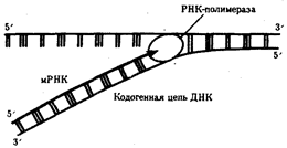 Рис. 25. Роль РНК-полимеразы в транскрипции: