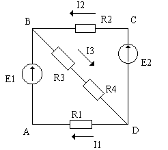 Для узла B электрической цепи , показанного на рис 1., ток I1 направлен к узлу , токи I2 и I3 от него. Согласно определению I1 + I2 = I3 или I1 + I2 - I3 = 0.