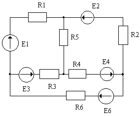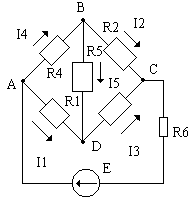 Задание 3. Для схемы электрической цепи ( рис 7. ) определить количество узлов , показать токи в ветвях и составить уравнения по первому и второму законам Кирхгофа.
