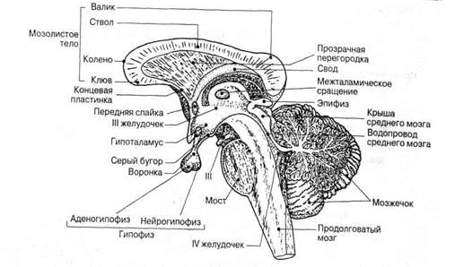 Рисунок 1. Промежуточный мозг на сагиттальном разрезе.