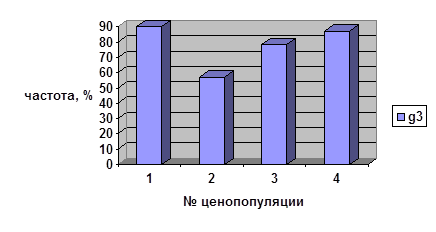 Три другие ценопопуляции характеризуются достаточно близкими значениями частот (4,4-5,0%). Что касается молодых генеративных и средневозрастных генеративных парциальных кустов, то в этих случаях отмечаются значительные колебания частот парциальных кустов, находящихся в данном возрастном состоянии более одного года, во всех четырёх ценопопуляциях. Как свидетельствуют данные рисунка 3, продолжительность онтогенетического состояния старых генеративных парциальных кустов характеризуется близкими значениями частот во всех изученных ценопопуляциях — от 57 до 90%.