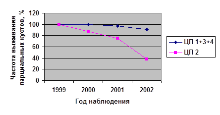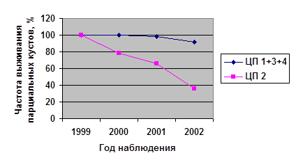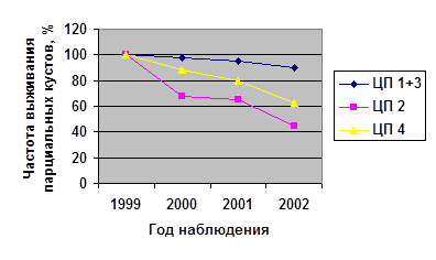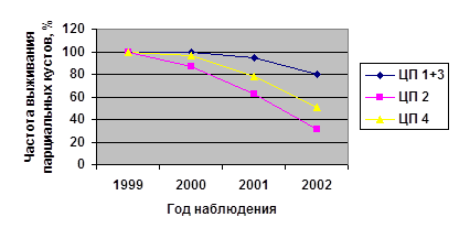 На рисунке 2 показаны частоты выживаемости парциальных кустов за весь период наблюдения.