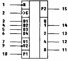 Принципиальная схема высокоскоростного синхронного счетчика отличается внутренней логикой ускоренного переноса и тем, что все триггеры получают перепад тактового импульса одновременно. Изменения выходных состояний триггеров совпадают по времени, поэтому в выходных импульсных последовательностях нет пиковых помех (клыков). Запускающий тактовый фронт импульса – положительный, причем для варианта этой микросхемы с переходами Шоттки буферный элемент тактового входа имеет порог Шмитта с гистерезисом Т400 мВ, что уменьшает чувствительность к импульсным помехам, а также обеспечивает устойчивое переключение триггеров при медленно нарастающем перепаде тактового импульса.