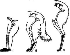 Рис.7. Задние конечности пальце- и стопоходящих млекопитающих.