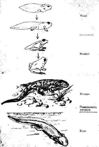 Рис. 1. Различия между водными и наземными стадиями у амфибий
