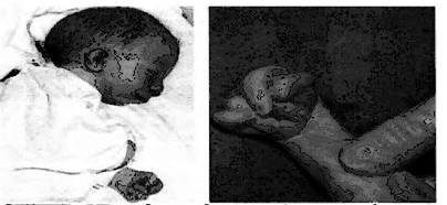 Рис. 8 Новорожденный с Рис. 9 Характерное для синдромом Эдвардса. синдрома Эдвардса Выступающий затылок; положение пальцев микрогения; флексорное (возраст ребенка 2 мес.) положение кисти