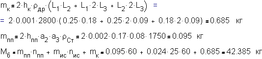 М - масса пластины с элементами, М = mпп + mис × 25 = 0.095 + 0.024 × 25 = 0.695 кг;