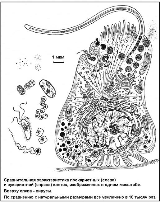 Рис. 3. Схема организации про- и эукариотной клеток.