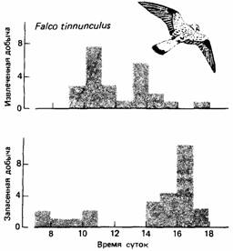 Животное, адаптированное к среде, придерживается такого суточного распорядка, который максимально увеличивает ценность разных видов его активности для выживания. Отчасти это означает наилучшее использование предоставляющихся возможностей. Например, распространенная в Европе пустельга, дневной хищник, нападает главным образом на мелких млекопитающих. Эта птица обнаруживает добычу с помощью зрения и успешнее всего охотится при хорошем освещении. В полевых исследованиях установлено, что пустельга хватает добычу весь день, но не всегда тут же поедает ее. Она прячет избыток пищи в случайно выбранных местах своего охотничьего участка. Это происходит в течение всего дня. Спрятанная пища обычно извлекается в сумерках, что позволяет пустельге максимально использовать для охоты светлую часть суток, не тратя слишком много времени на еду. Кроме того, если бы птица сразу съедала всю добычу, она становилась бы слишком тяжелой и, вероятно, эффективность ее охоты была бы снижена.