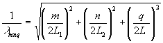 где L1 , L2 - длины сторон зеркал; L - длина резонатора m, n, q - целые индексы, определяющие число полуволн, укладывающихся вдоль сторон длиной L1 , L2 , L.