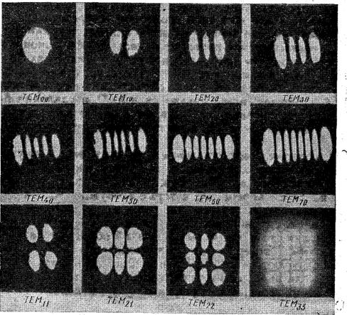 Рис. 3. Фотография структуры поля некоторых типов колебаний в генерирующем лазере